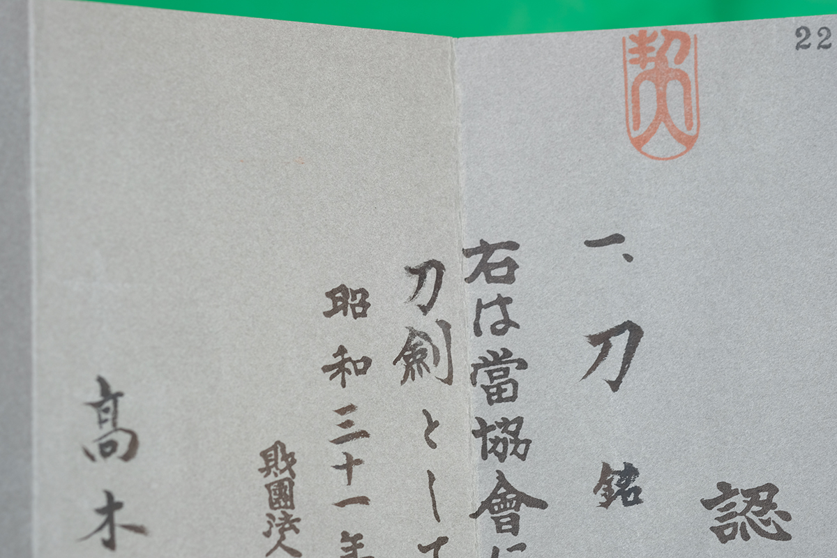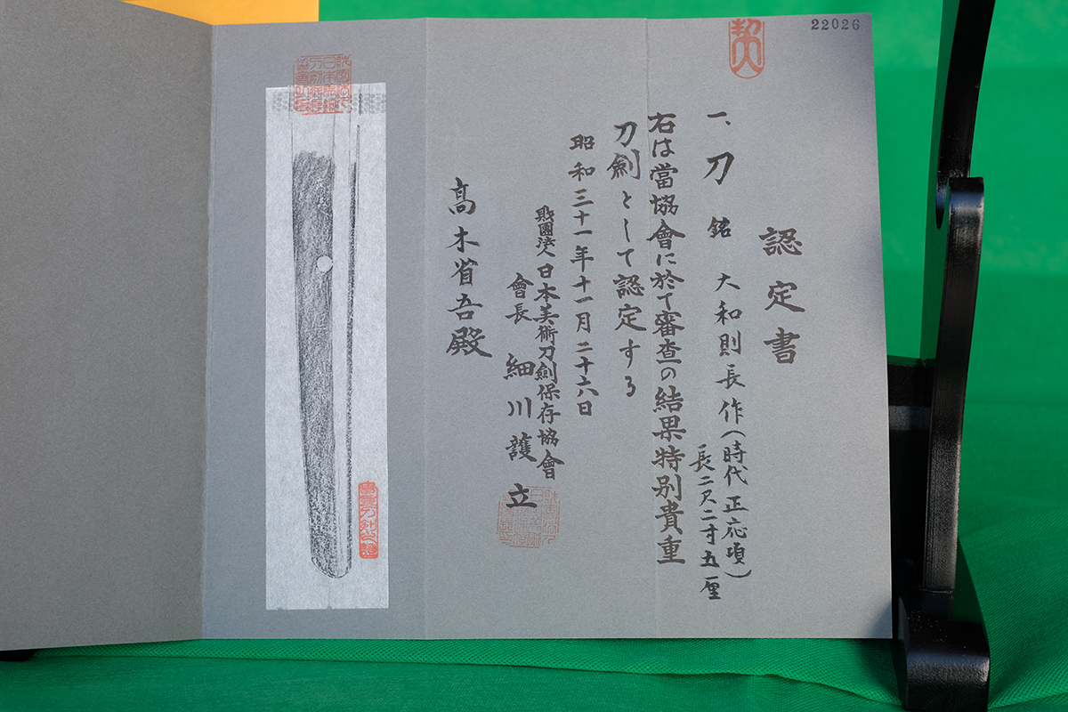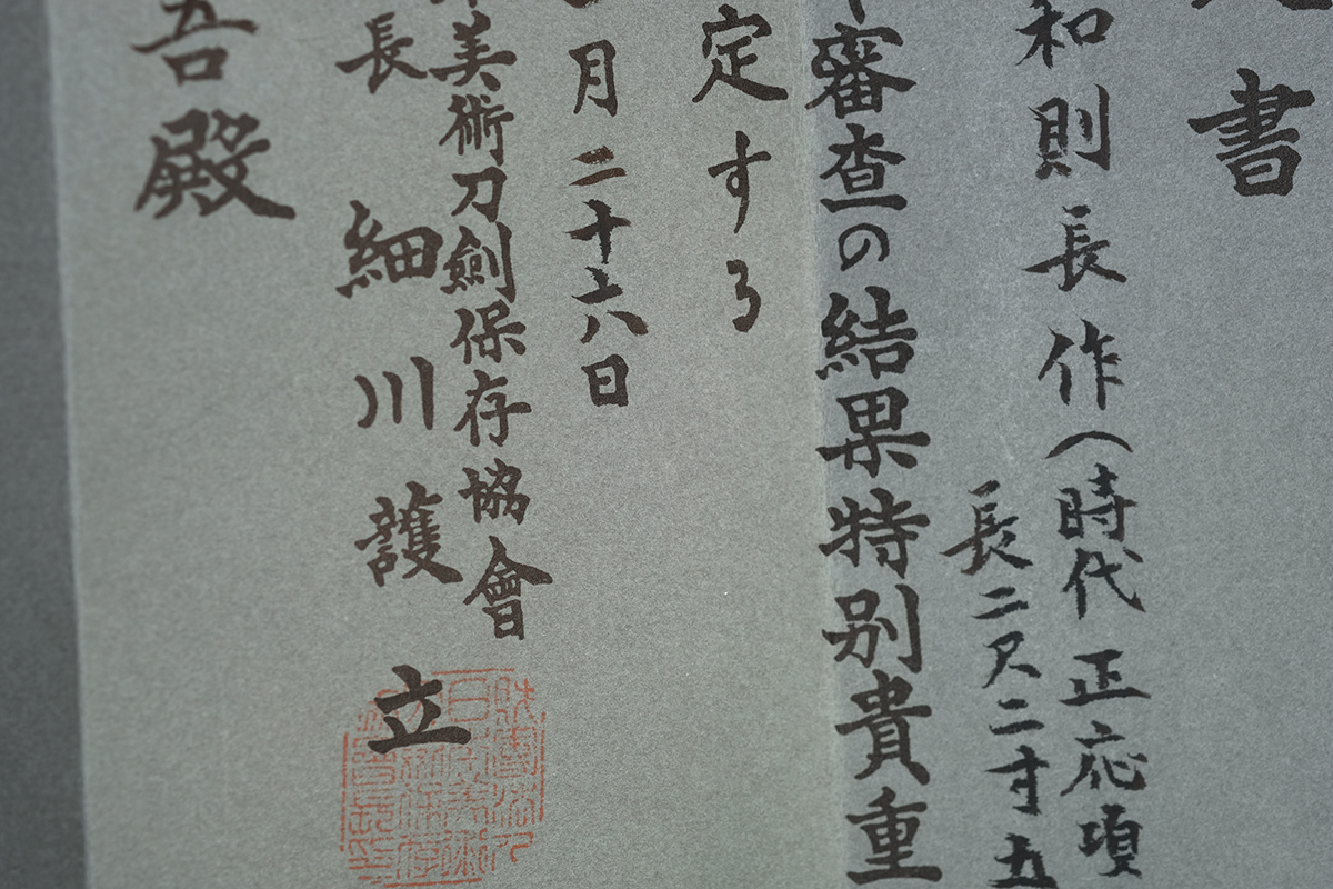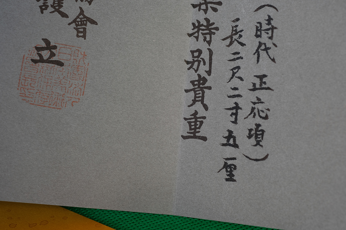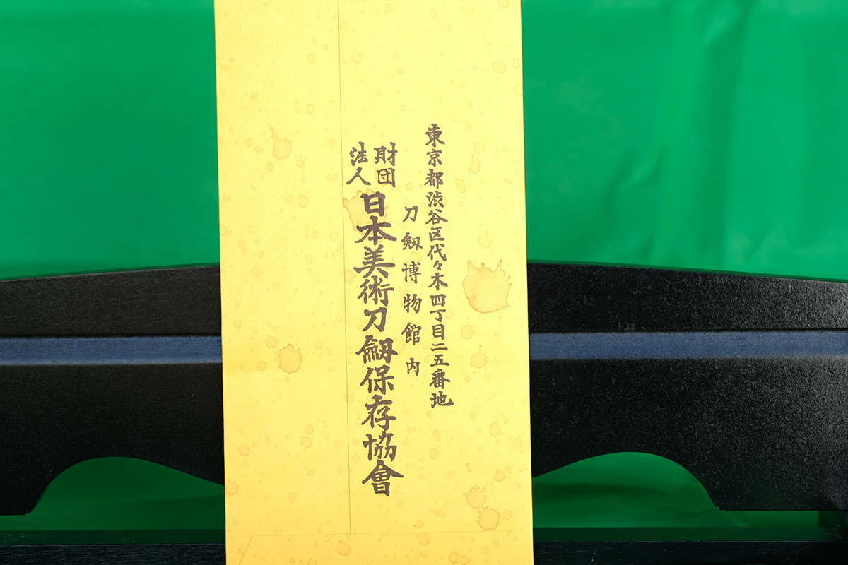 The above sword has been recognized as a specially valuable sword after examination by the Association.