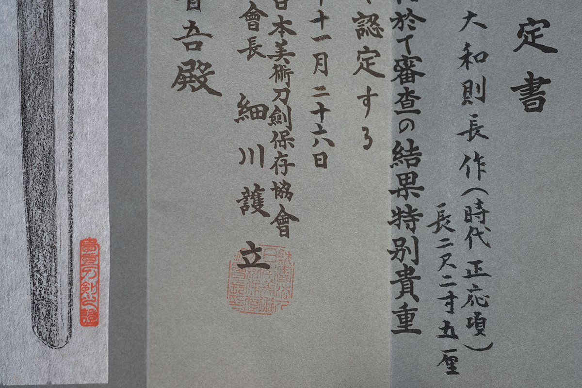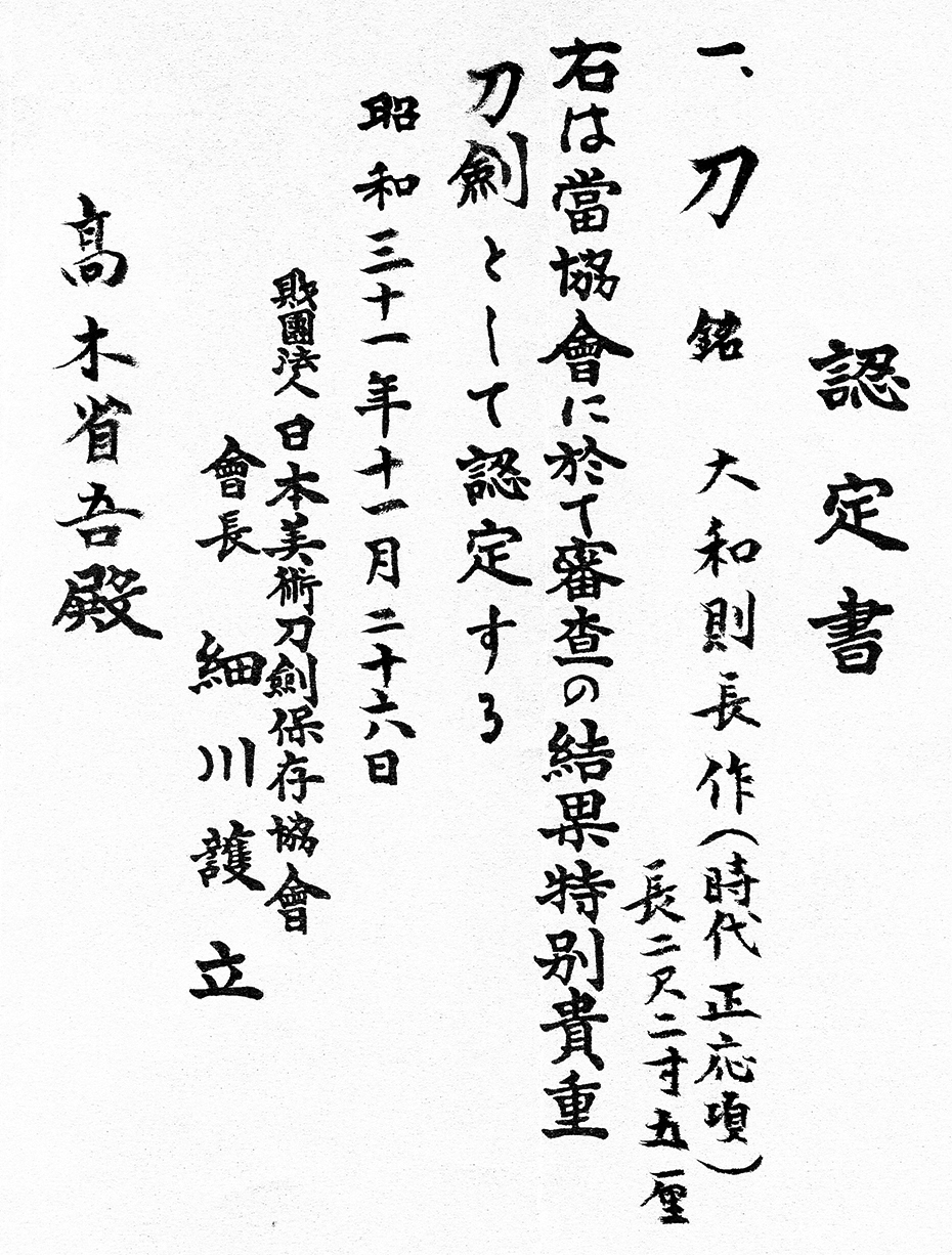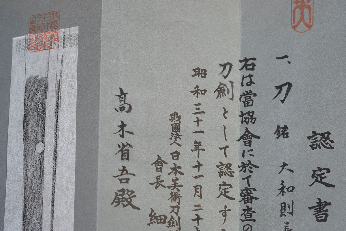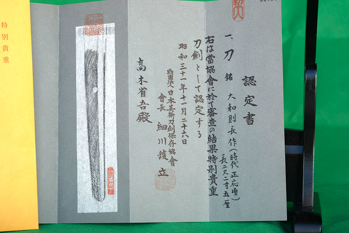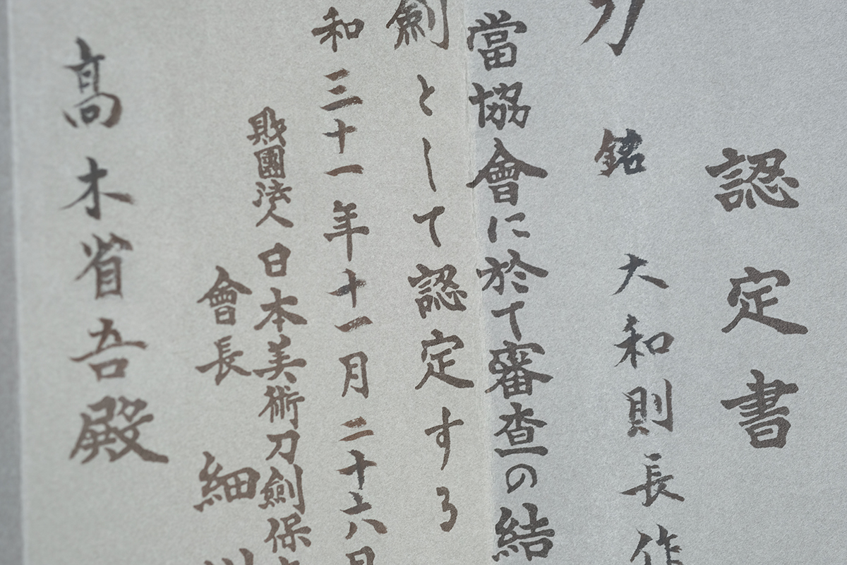 The above sword has been recognized as a specially valuable sword after examination by the Association.